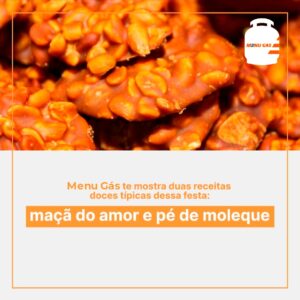 Já demos dicas de pratos para que seu Cardápio Junino seja caprichado, mas não dá para deixar de falar dos doces que a gente ama das Festas Juninas, né? Por isso, nas imagens abaixo, você encontra a receita de dois doces bem característicos dessa festa – a Maçã do Amor e o Pé de Moleque. Duas delícias! Anota tudo e compartilha com os amigos pra eles aproveitarem as dicas também! Menu Gás – Um Menu de Opções!!